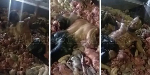 Luego de que se registraran dos muertes por achuras contaminadas, salió a la luz un video de un hombre que se sumerge en un camión lleno de tripas y carne.