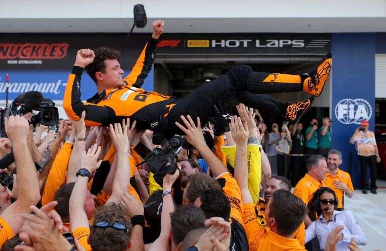 “¡Ya era hora! Menuda carrera. Ha tardado mucho en llegar. Por fin lo he conseguido”, sostuvo Norris a Sky Sports. “Estoy muy contento por todo mi equipo. Por fin he cumplido por ellos”.