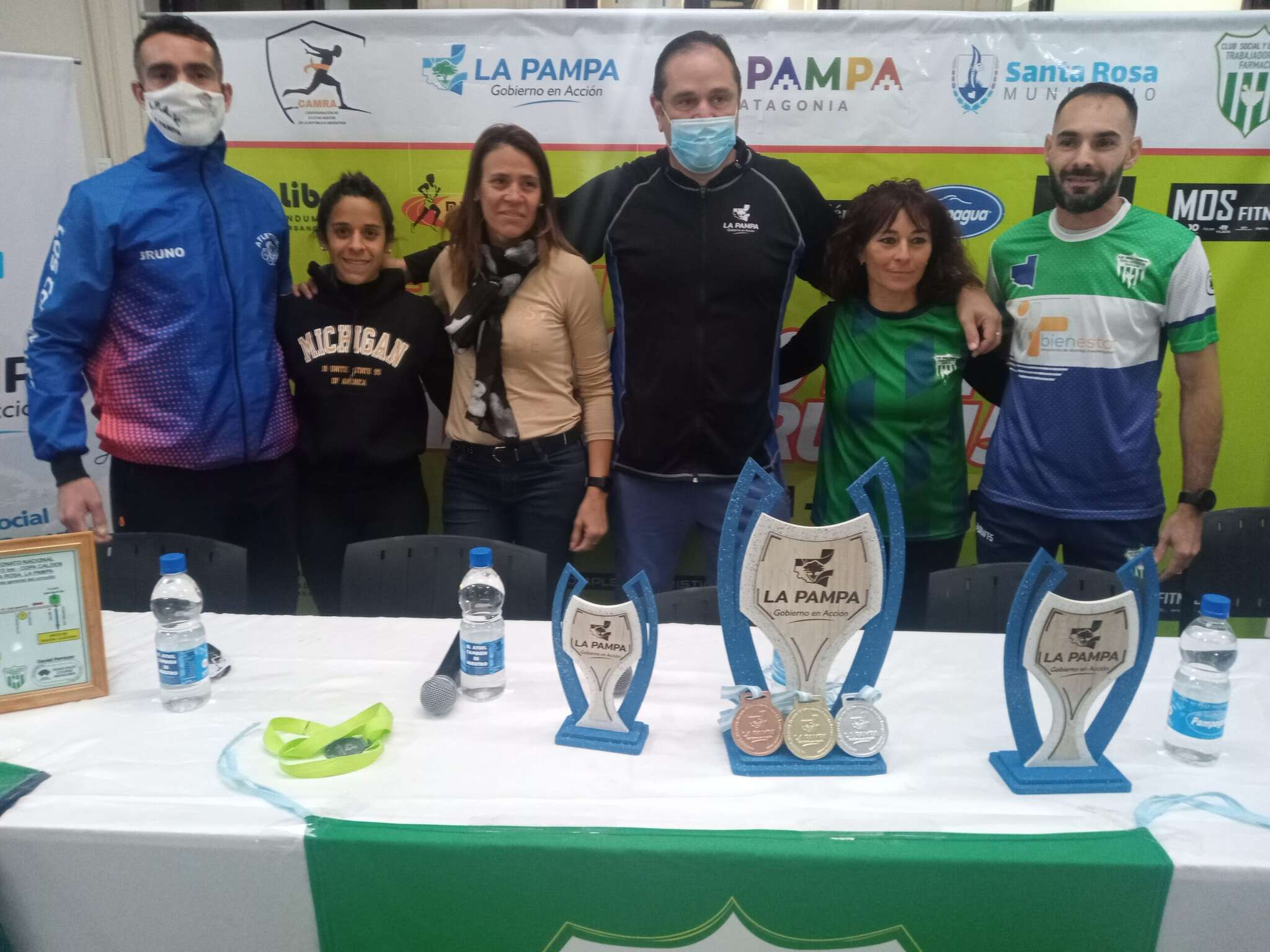 El presidente del club Trabajadores de Farmacia, Lucas Corral, la diputada Valeria Luján y la presidenta de la Federación Atlética Pampeana, Marta Ayala, junto a distintos atletas pampeanos que serán de la partida, también estuvieron presente en el lanzamiento, realizado en la sede de la Subsecretaría.