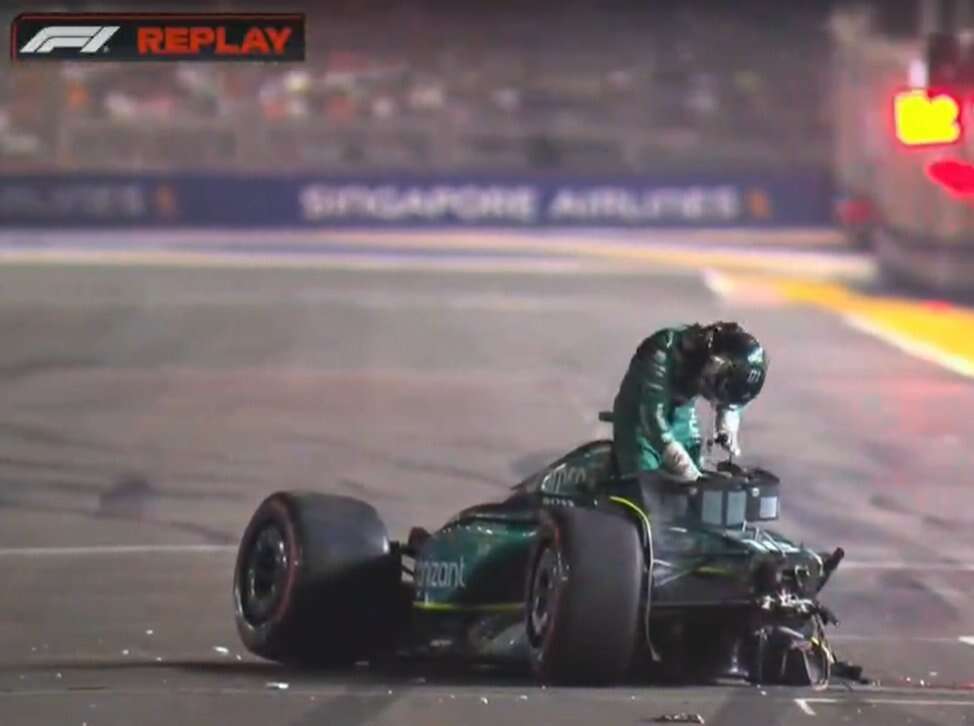 El piloto canadiense Lance Stroll, compañero de equipo del español Fernando Alonso en Aston Martin, sufrió un aparatoso accidente en la última curva del circuito de Singapur, con grandes daños materiales que obligaron a los comisarios a sacar la bandera roja y acabar la primera fase de clasificación (Q1) de forma prematura.