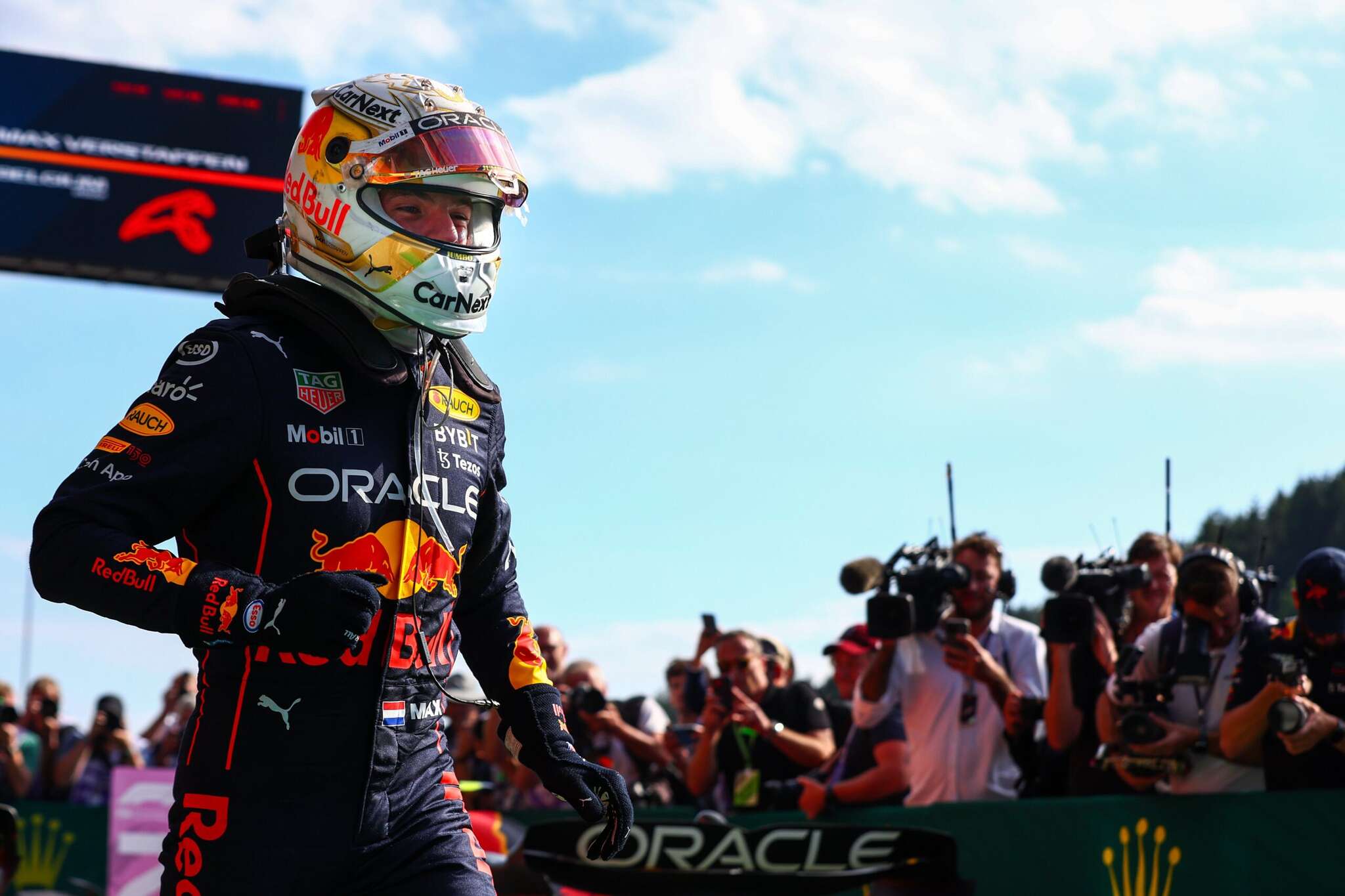 El podio lo completaron el mexicano Sergio “Checo” Pérez (Red Bull) y el español Carlos Sainz (Ferrari).