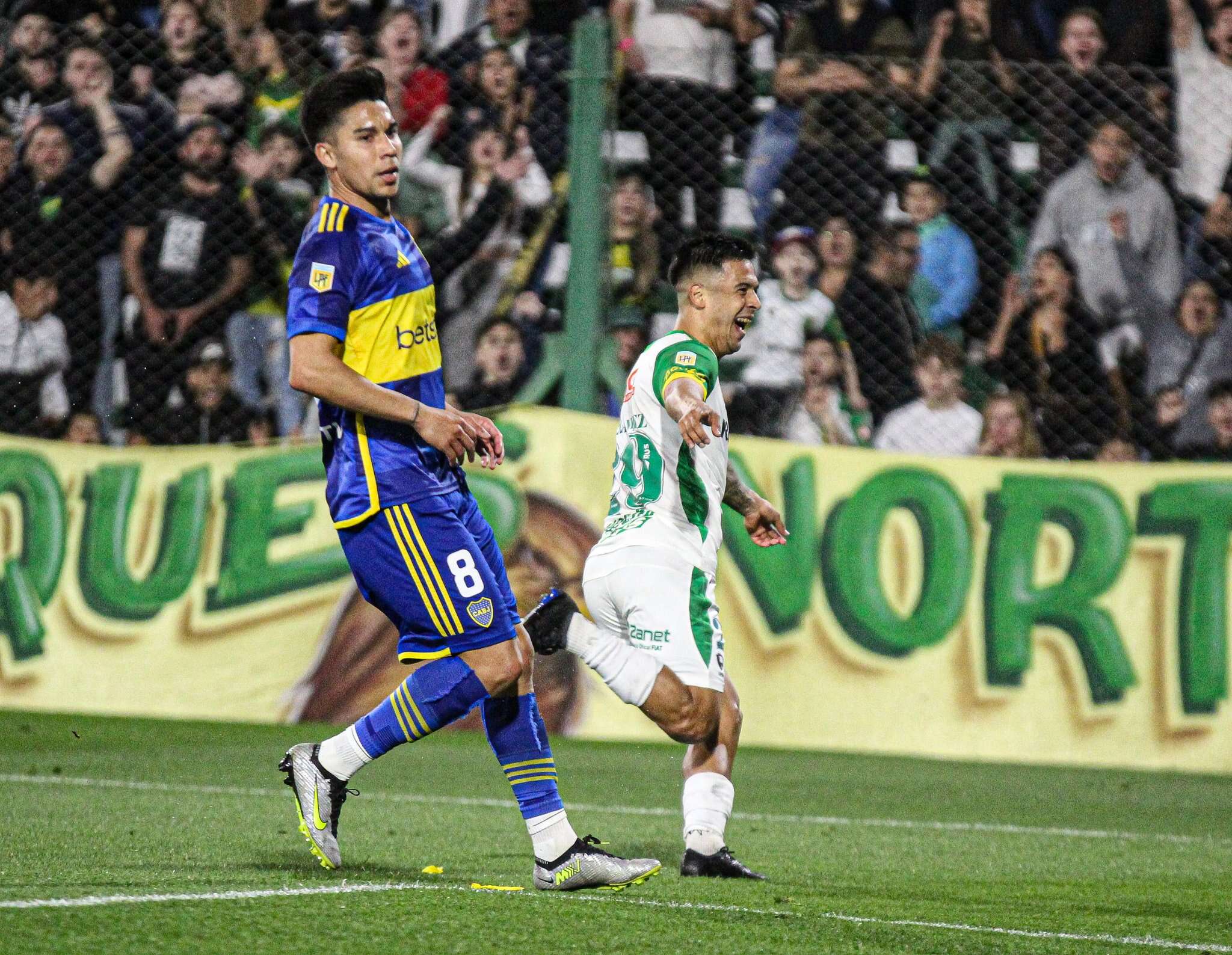 En el primer tiempo arrancó mejor el conjunto de Jorge Almirón, dando signos de peligrosidad con su ataque con Valentín Barco, Luis Advíncula y Edinson Cavani, pero con el correr de los minutos perdió el medio y, con errores forzados por la presión local, terminó pasándola mal en el cierre del primer tiempo al punto de irse al descanso abajo en el marcador.