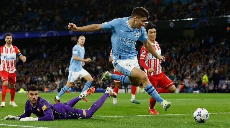 El actual campeón europeo Manchester City, con dos goles de Julián Ãlvarez que estuvo desde el arranque, se lo dio vuelta al Estrella Roja de Belgrado y le ganó 3-1 en la apertura del Grupo G de la UEFA Champions League para comenzar con el pie derecho la defensa del título.
