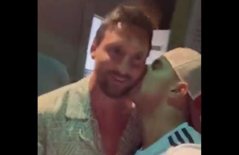 El mendocino, que actualmente se encuentra radicado en la ciudad estadounidense, consiguió llamar la atención del ex Barcelona y PSG por lucir la camiseta de la selección argentina, y luego descolocó a Lionel con un beso en la mejilla. “Leo, te amo, te amo hermano, gracias por tanto”, gritó el fanático.