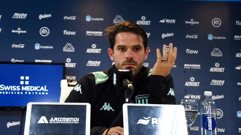 El entrenador de Racing se mostró incómodo e irritado por las preguntas de los cronistas / Foto: Camila Godoy.