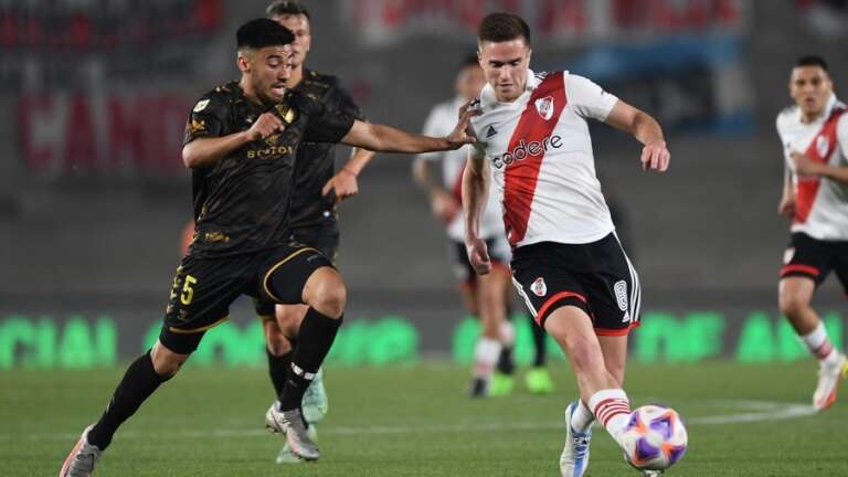 Platense se paró con línea de 5 en el fondo y complicó a River cuando ajustó la marca en el mediocampo. Este movimiento retrasó a jugadores clave como Juan Fernando Quintero, Esequiel Barco, De La Cruz y Enzo Pérez.