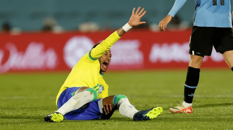 El astro brasileño Neymar Junior sufrió la rotura del ligamento cruzado anterior y del menisco de la rodilla izquierda en la derrota ante Uruguay por 2-0 en Montevideo por las Eliminatorias Sudamericanas y estará ocho meses fuera de las canchas.