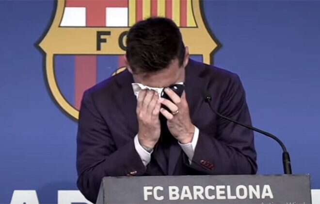 Messi ofreció una conferencia de prensa en el auditorio del Camp Nou al que ingresó quebrado emocionalmente, ante la vista de su esposa Antonela Roccuzzo, sus tres hijos, el presidente Joan Laporta, el plantel profesional y la prensa local e internacional.