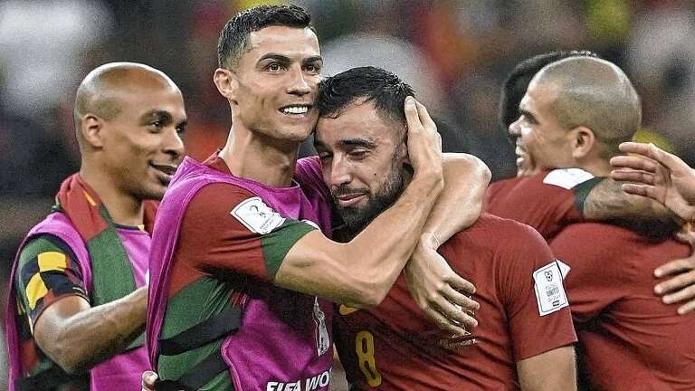 Bruno Fernandes, a los 9 minutos del segundo tiempo, tiró un centro para Cristiano Ronaldo que terminó con la pelota en la red pese a que el delantero quiso cabecear pero no la tocó -aunque lo festejó como un tanto propio- y luego anotó en el descuento, de penal, para darle la victoria a Portugal.