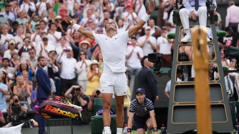 Nadal, de 36 años y actual número 4 del ranking mundial de la ATP, escribió hoy otra página gloriosa en su extensa y brillante historia, ya que se repuso a una lesión en el abdomen, que casi lo obliga a abandonar y se sostuvo en cancha durante cinco sets para doblegar al norteamericano Fritz (14), luego de un maratónico enfrentamiento que duró 4 horas y 20 minutos.