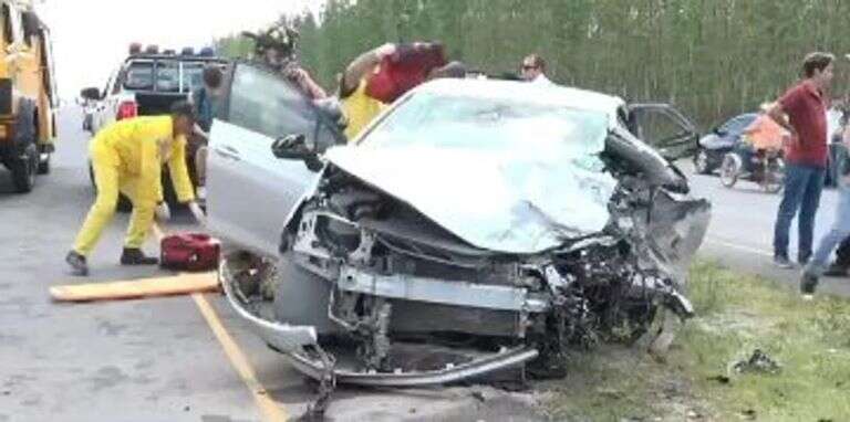 El accidente se produjo a unos 500 metros de la Aduana de José Falcón donde un automóvil Toyota Vitz negro con chapa paraguaya, rozó a una motocicleta e invadió el carril contrario, donde chocó frontalmente contra un automóvil de chapa argentina.