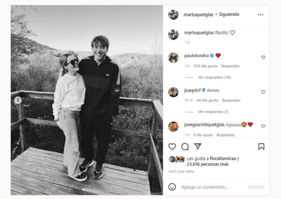 Se los puede ver a los dos abrazados y muy enamorados. Ella escribió: “Paulito” y un corazón blanco, mientras que él le comentó con un corazón rojo. Los comentarios en la foto son positivos ya que la mayoría apoyan a la pareja y son mensajes de amigos de ambos.