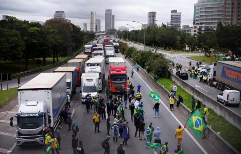 La Policía Federal de Carreteras (PRF) de Brasil reportó que manifestantes estaban bloqueando las carreteras parcial o totalmente en 156 lugares hasta este miércoles por la mañana, por debajo de los 190 de la noche anterior.