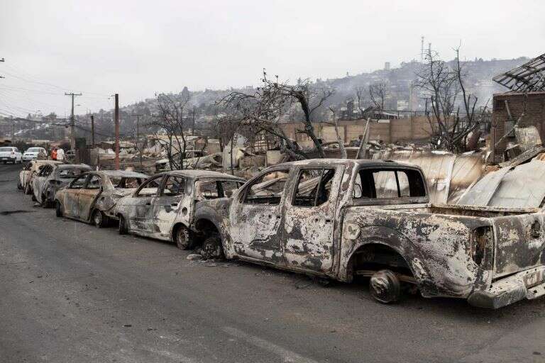 Imágenes de drones filmadas por Reuters en el área de Viña del Mar mostraron vecindarios enteros calcinados, con residentes hurgando entre los restos de casas quemadas donde los techos de hierro corrugado se habían derrumbado. En las calles, los coches chamuscados cubrían las carreteras.