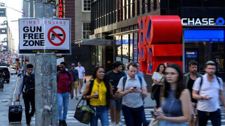 El alcalde, un expolicía que convirtió la lucha contra la violencia por armas de fuego en el punto central de su gestión, presentó el mes pasado un cartel que decía “Times Square: Zona Libre de Armas”, que fue colgado en esta concurrida e icónica zona del corazón de Manhattan.