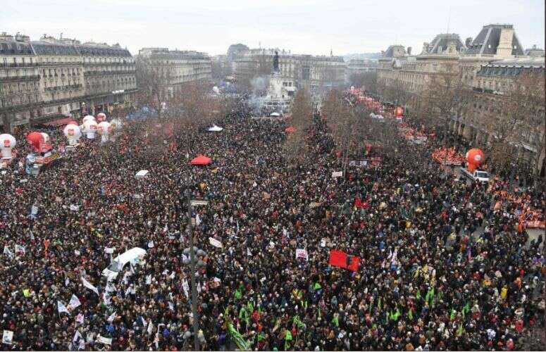 Una manifestación récord contra la reforma de la jubilación en Francia se extendió el sábado a la tarde en París y en las principales ciudades del país. Familias enteras marchaban pacíficamente, en plenas vacaciones escolares y un sábado, el día que las empresas no pueden descontar los salarios de los que participaban.