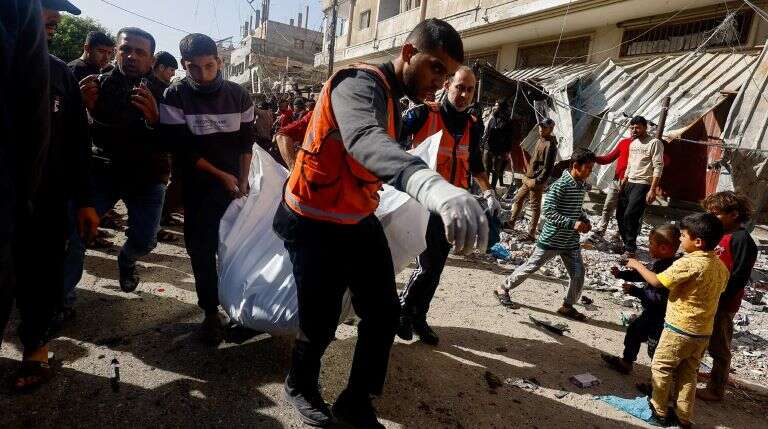 Informes de medios de comunicación palestinos e imágenes compartidas por gazatíes en las redes sociales mostraban cadáveres esparcidos por la calle y algunos enterrados bajo los escombros en los alrededores del hospital indonesio de Beit Lahiya, en el norte de Gaza.