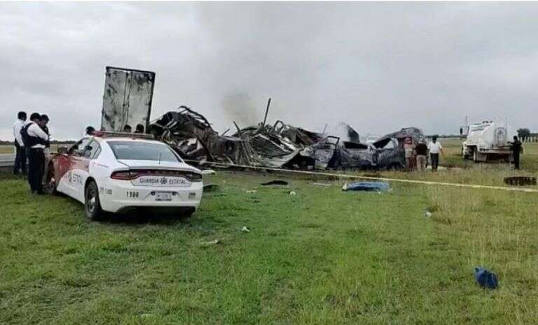 Los dos vehículos chocaron a una media hora de la capital del estado, Ciudad Victoria, y luego se incendiaron, informó la Secretaría de Seguridad Pública de Tamaulipas.