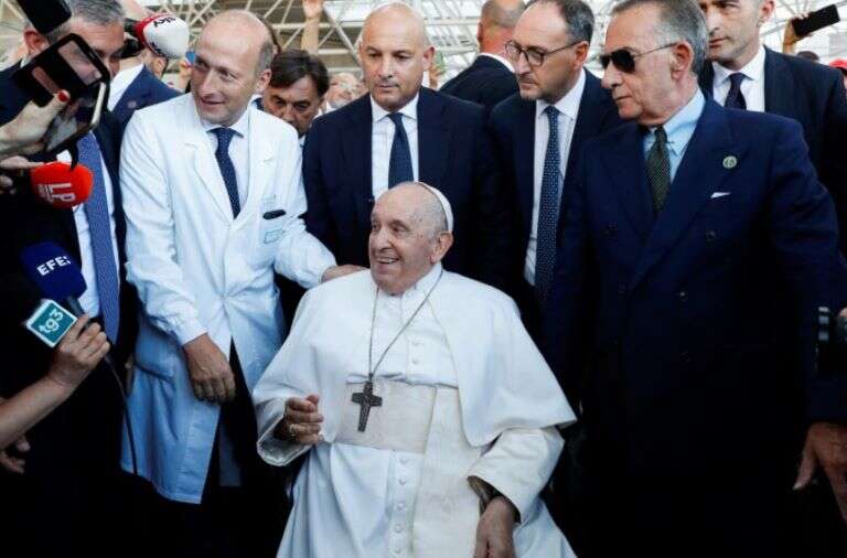 El pontífice, de 86 años, abandonó el hospital Gemelli de Roma en silla de ruedas, sonriendo y saludando a periodistas y fieles. “Se encuentra en mejor forma que antes”, aclaró el médico que lo operó de una hernia abdominal. El Papa Francisco fue dado de alta del hospital este viernes por la mañana, nueve días después de…