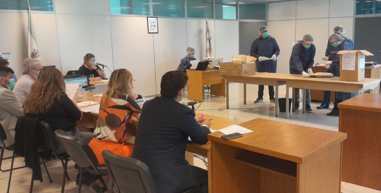 Si bien está previsto que haya otras audiencias similares para concluir con el reacondicionamiento de las evidencias, en esta primera el personal de la AIC reembolsó y reetiquetó medio centenar de pruebas recolectadas en 2013 y para ello trabajó con guantes, delantales, barbijos y cofias para no contaminarlas; mientras las distintas partes que intervienen en el caso observaron el procedimiento también protegidos con barbijos.