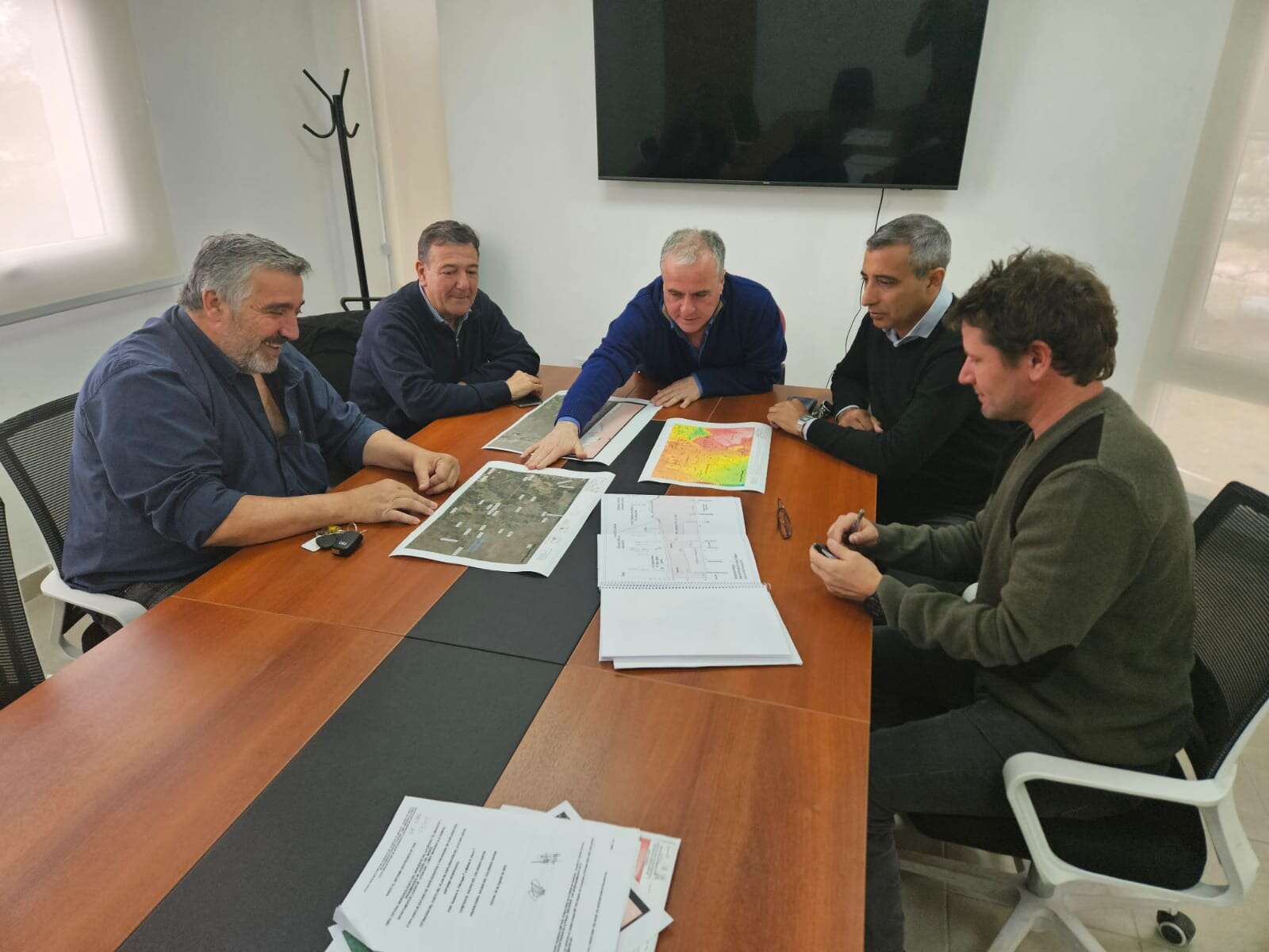 En este contexto el titular de Aguas del Colorado, Juan Carlos Mecca, junto a un profesional del área y el Secretario de Asuntos Municipales, Rogelio Schanton, se reunieron con los intendentes Guillermo Farana (Santa Isabel) y Oscar Gatica (Algarrobo del Águila) para informarles acerca de los estudios que se llevan a cabo con el objeto de determinar la viabilidad del proyecto de acueducto que sirva esas localidades desde El Meauco.