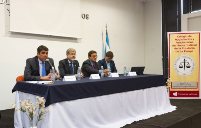 Bensusán se refirió a la Ley de Procedimiento Laboral que rige en La Pampa desde 1980 y abordó especialmente las modificaciones sugeridas por la Comisión creada a tal efecto, integrada por representantes de los tres poderes provinciales, del Colegio de Abogados y Procuradores de La Pampa y del Colegio de Magistrados y Funcionarios del Poder Judicial y la Universidad Nacional de La Pampa. “Si bien fue una herramienta útil para dar soluciones a los litigios laborales, resulta necesaria una actualización que recepte la aplicación de nuevas tecnologías en medios probatorios y un primer paso hacia una mayor oralidad del proceso”, consideró el ministro.