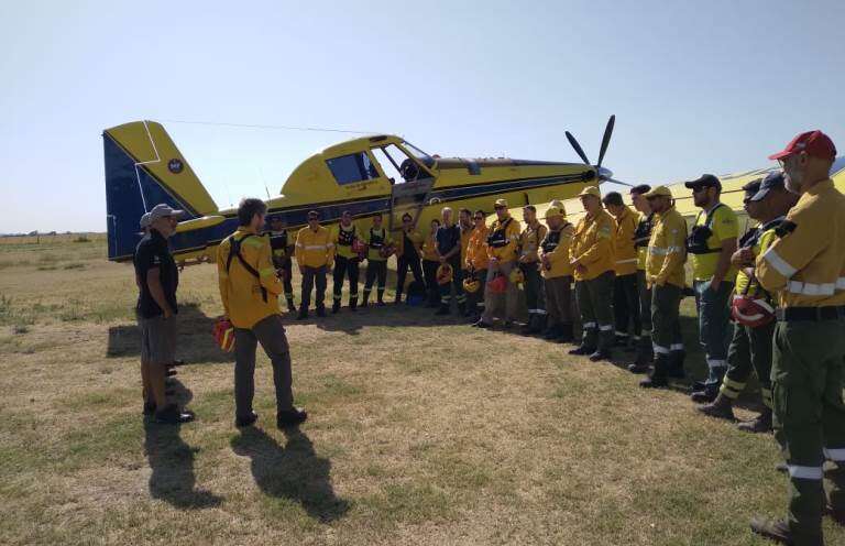 Capacitan a brigadistas y bomberos pampeanos sobre el uso de medios aéreos para enfrentar incendios