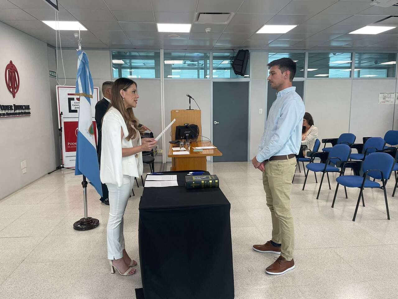 En esta ocasión, la jueza civil de primera instancia, Ivana Valeria Ãlvarez Bustos, les recibió la jura a los jueces y juezas titulares y suplentes ”“que asumirán sus cargos el 10 de diciembre”“ de 15 localidades del centro y este provincial.