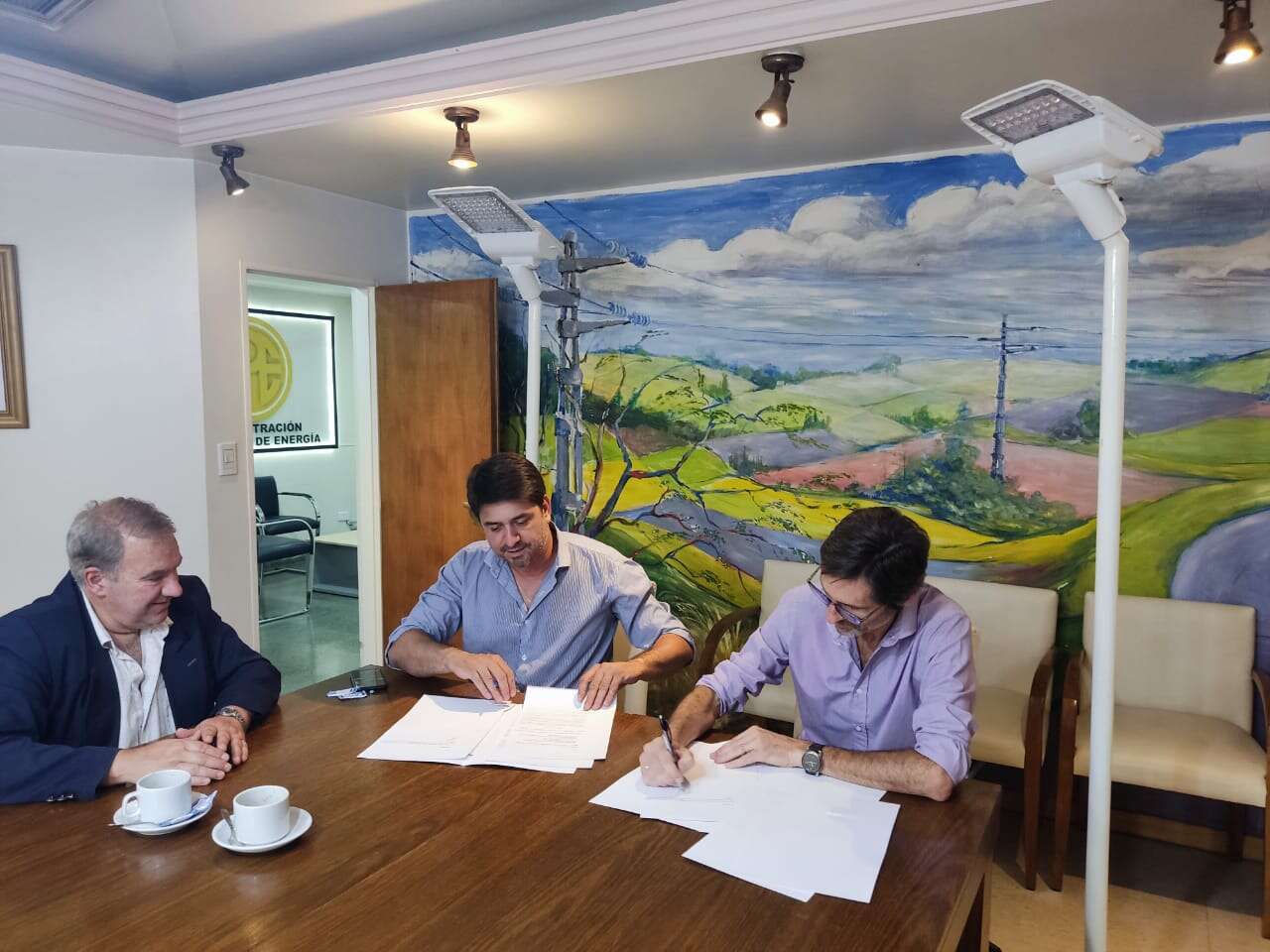 Suscribieron el Acta de Entrega junto al gerente de Administración y Finanzas de la Administración Provincial de Energía (APE), Darío Zubeldía, el intendente de Catriló, Ricardo Delfino; de Miguel Riglos, Federico Ortíz y de Telén, Saúl Echeveste.