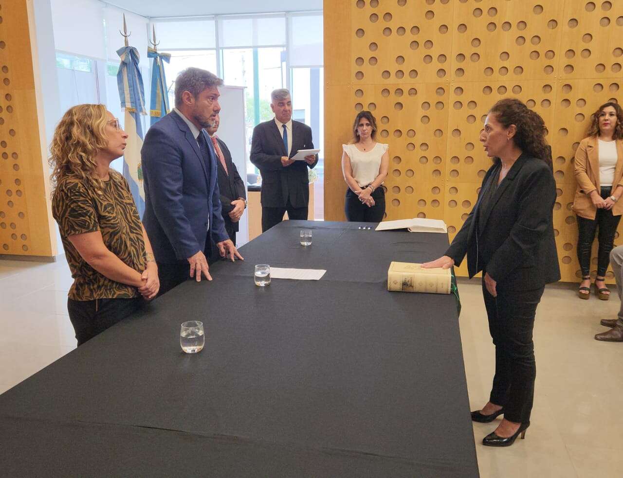 Durante la ceremonia, Ana María Ballari asumió como fiscala sustituta del Ministerio Público Fiscal; Vanina Gisela Galván y Mariana Vanesa Bazán lo hicieron como prosecretarias sustitutas en el M.P.F.; y Carina Lis Carbajo asumió como prosecretaria sustituta en la Cámara de Apelaciones en lo Civil, Comercial, Laboral y de Minería.