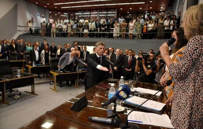 Luego y ante los presidentes de los distintos Bloques que conforman la Cámara de Diputados, el primer Mandatario provincial brindó un discurso frente a los legisladores que integran el recinto, autoridades del Poder Ejecutivo, Judicial, Municipal, diputados y senadores nacionales, exgobernadores provinciales, y público en general.