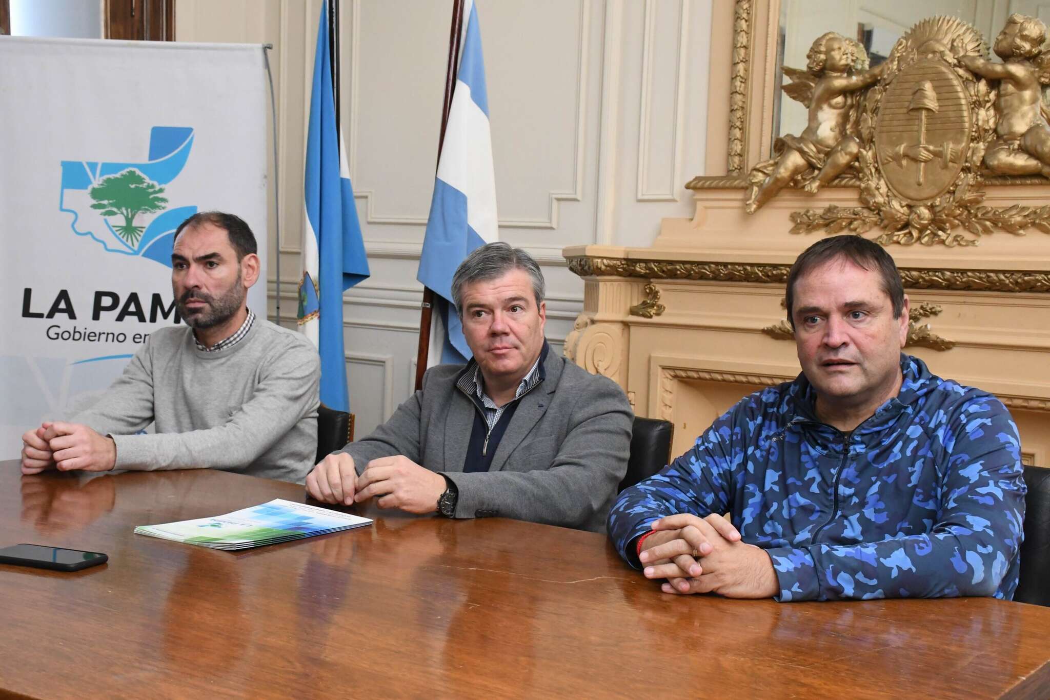 El ministro de Desarrollo Social y Derechos Humanos, Diego Álvarez; junto al subsecretario de Deportes, Recreación y Turismo Social, Ceferino Almudévar; hizo entrega ayer de aportes al Club Santa Rosa, Club Rucalén, Liga de Agrupaciones de Veteranos de Fútbol y Club Estudiantes.