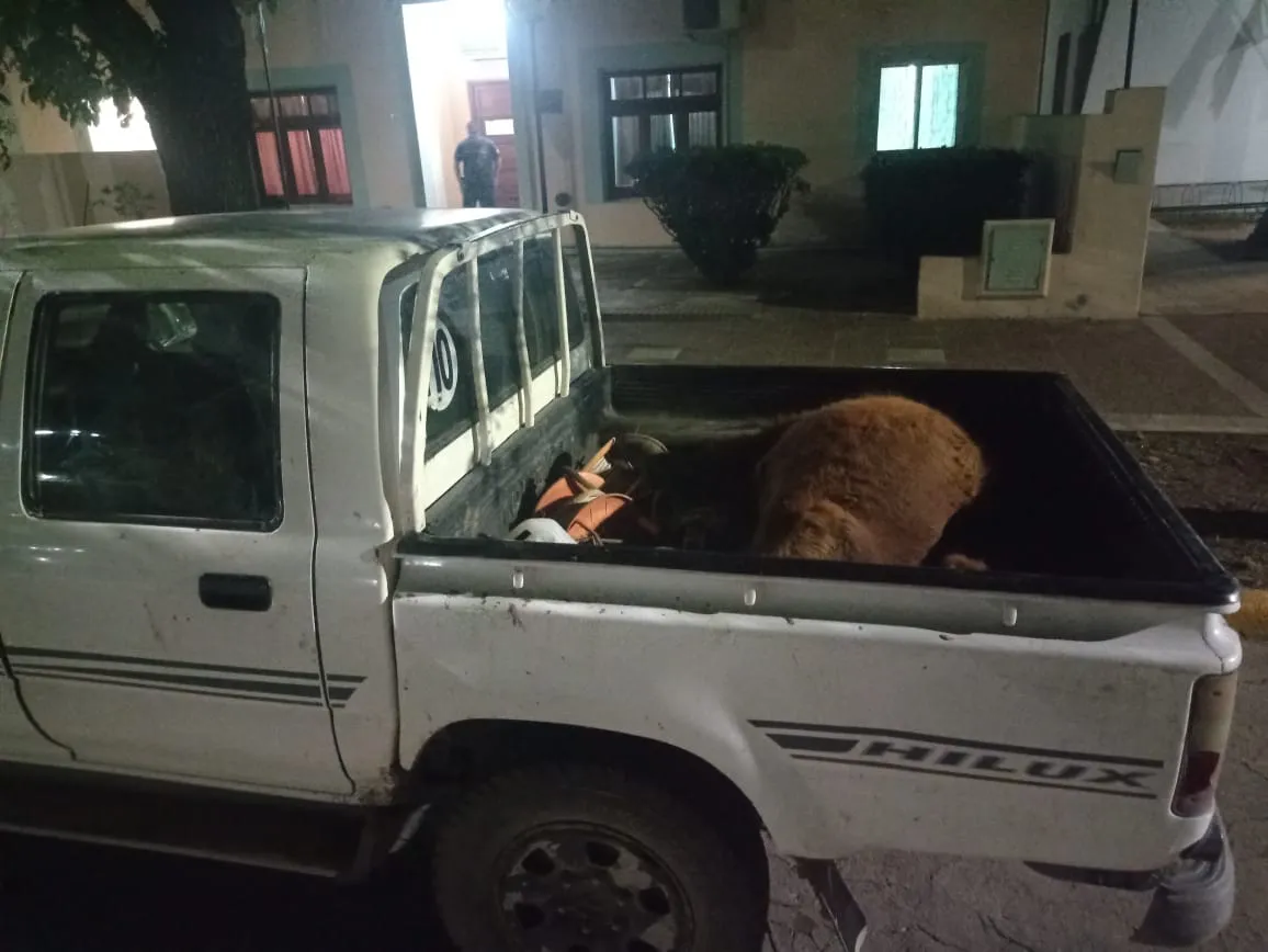La Policía de Embajador Martini informó sobre un presunto hecho delictivo ocurrido anoche. Aproximadamente a las 20 horas, un móvil de esa dependencia, mientras realizaba una recorrida por la zona rural, detectó una camioneta Toyota Hilux doble cabina de color blanco saliendo de un predio cercano a la localidad. El vehículo era conducido por un hombre, y al proceder a su identificación, los efectivos notaron que transportaba un animal bovino sin vida en la caja de carga.