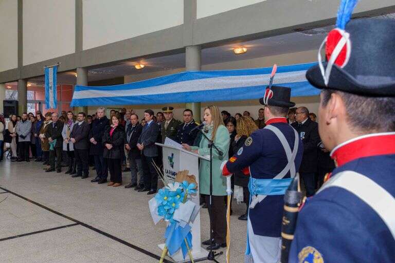 La intendenta de Luan Toro, Mónica Valor, dio la bienvenida a los presentes y afirmó que “hoy, Luan Toro se viste de celeste y blanco” e hizo una recorrida histórica sobre la creación de la Bandera Argentina por parte de Manuel Belgrano, en el día de su fallecimiento. “Nuestra bandera nos hermana en nuestro lugar y nos representa en el mundo. Es el símbolo de la lucha por alcanzar la libertad del pueblo argentino. En ella están inscriptas las luchas por la independencia, la libertad, la defensa de nuestra soberanía y los nombres de los héroes anónimos que murieron por la Patria”, dijo la jefa comunal.