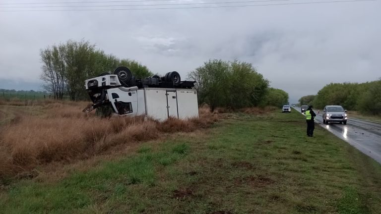 El siniestro vial ocurrió alrededor de las 4 de la mañana, en la mano que va hacia General Pico. El subcomisario Julio Martínez, de la Comisaría Departamental de Quemú Quemú, explicó que el camión, que transportaba productos desde Bahía Blanca, perdió el control tras una lluvia en la zona.