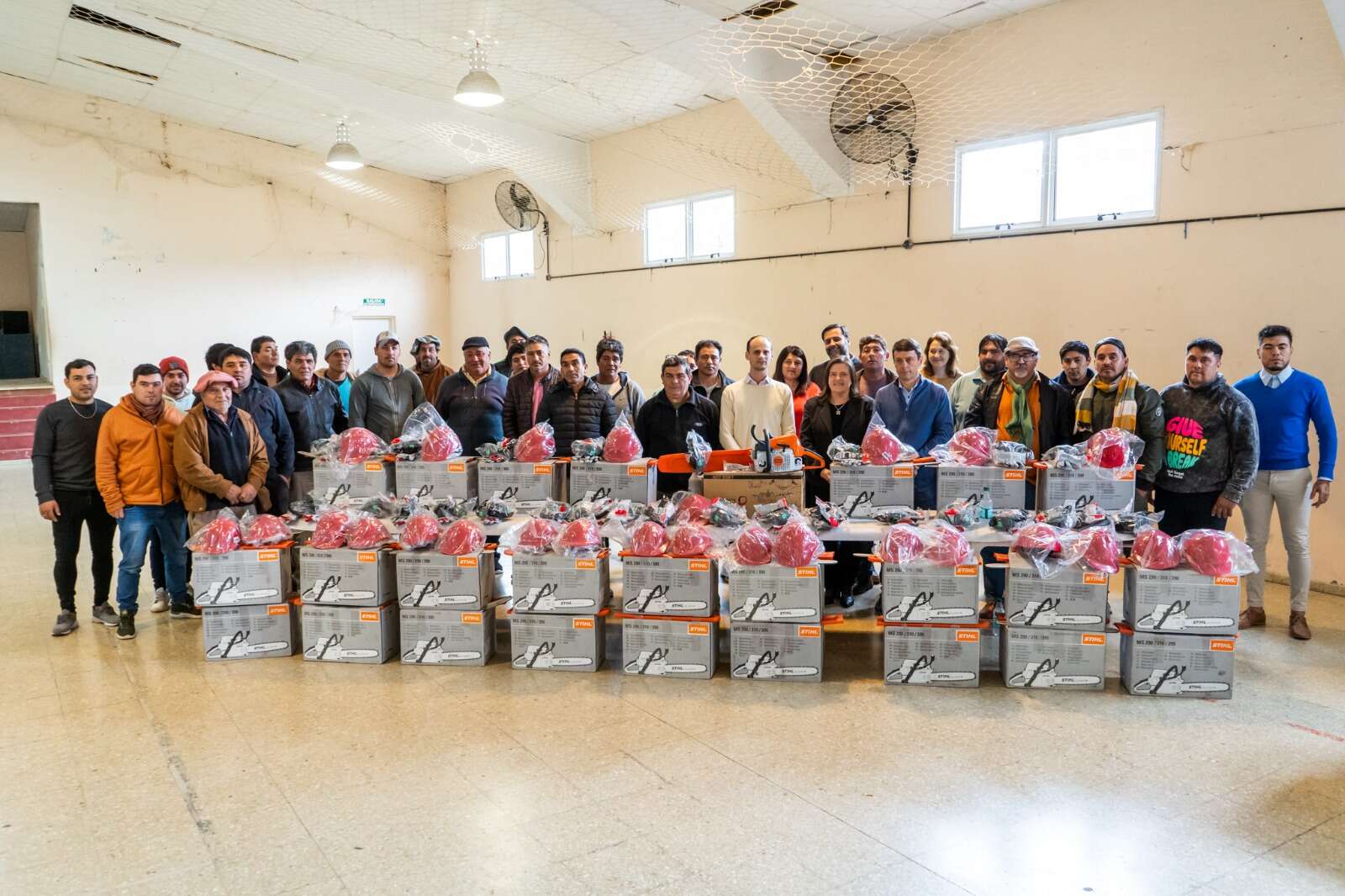 En esta oportunidad se entregó una chipeadora al municipio, una sierra circular, un trozador, 25 motosierras y 50 kits de seguridad personal. Además se hizo entrega de un crédito de la Ley 2870 de Economía Social para la compra de materiales de la construcción a un emprendedor local.