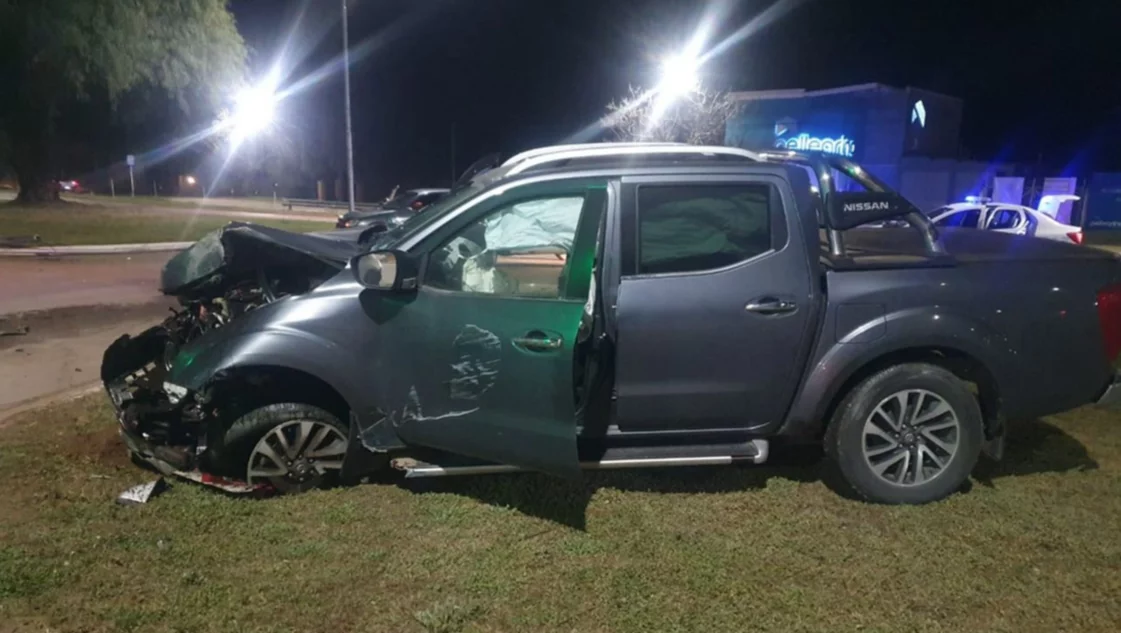 En la madrugada de este sábado, a las 00:55 horas aproximadamente, un hombre que conducía su camioneta Nissan Frontier en dirección hacia Santa Rosa perdió el control del vehículo luego de impactar contra el cordón de la rotonda de la calle Balbín y chocó contra una columna de luz y carteles de señalamiento.