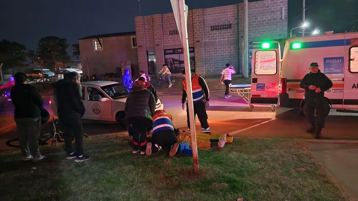 El incidente ocurrió ayer por la noche en la esquina de calles 428 y 403, en el barrio Bicentenario de General Pico. Allí, un motociclista colisionó con un Chevrolet Corsa utilizado como radiotaxi. En el rodado menor, iban 2 personas, una de las cuales cayó, resultó herida y fue abandona en el lugar por su compañero.