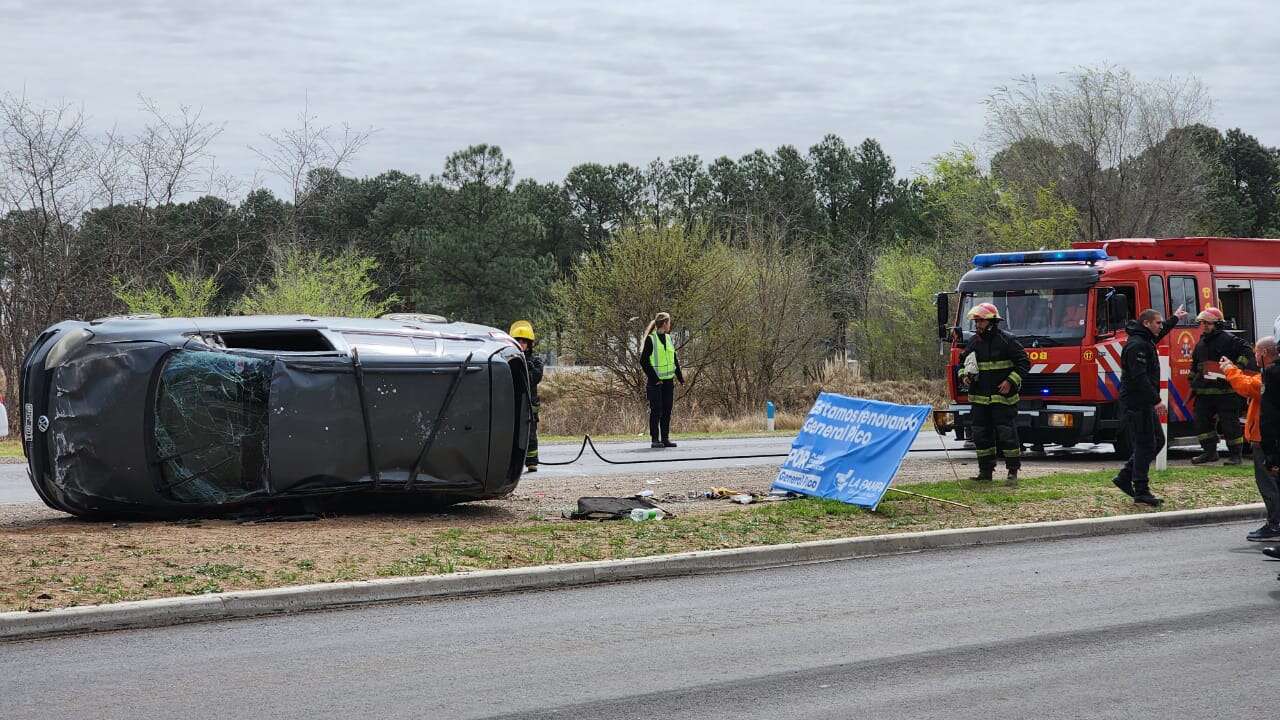 Un vehículo VW Suran se vio involucrado en un accidente este mediodía, al volcar frente al predio de la Asociación Italiana situada en la Ruta Provincial 1. El hecho ocurrió poco después de las 12:00 horas.