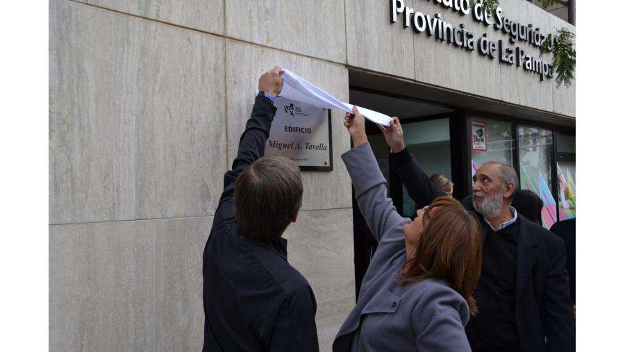 Encabezado por el presidente del Instituto de Seguridad Social, Rubén Mendoza, integrantes del Directorio, gerentes, personal y familiares del homenajeado, participaron de un emotivo acto donde se recordó la trayectoria de Miguel A. Tavella, ex presidente de la institución y se descubrió una placa que impone su nombre al edificio ubicado en calle Pellegrini 460, de Santa Rosa.