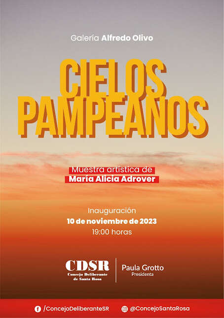 Este viernes 10 a las 19 horas, se inaugurará la muestra “Cielos Pampeanos” de la artista María Alicia Adrover, en la Galería Alfredo Olivo del Concejo Deliberante de Santa Rosa.