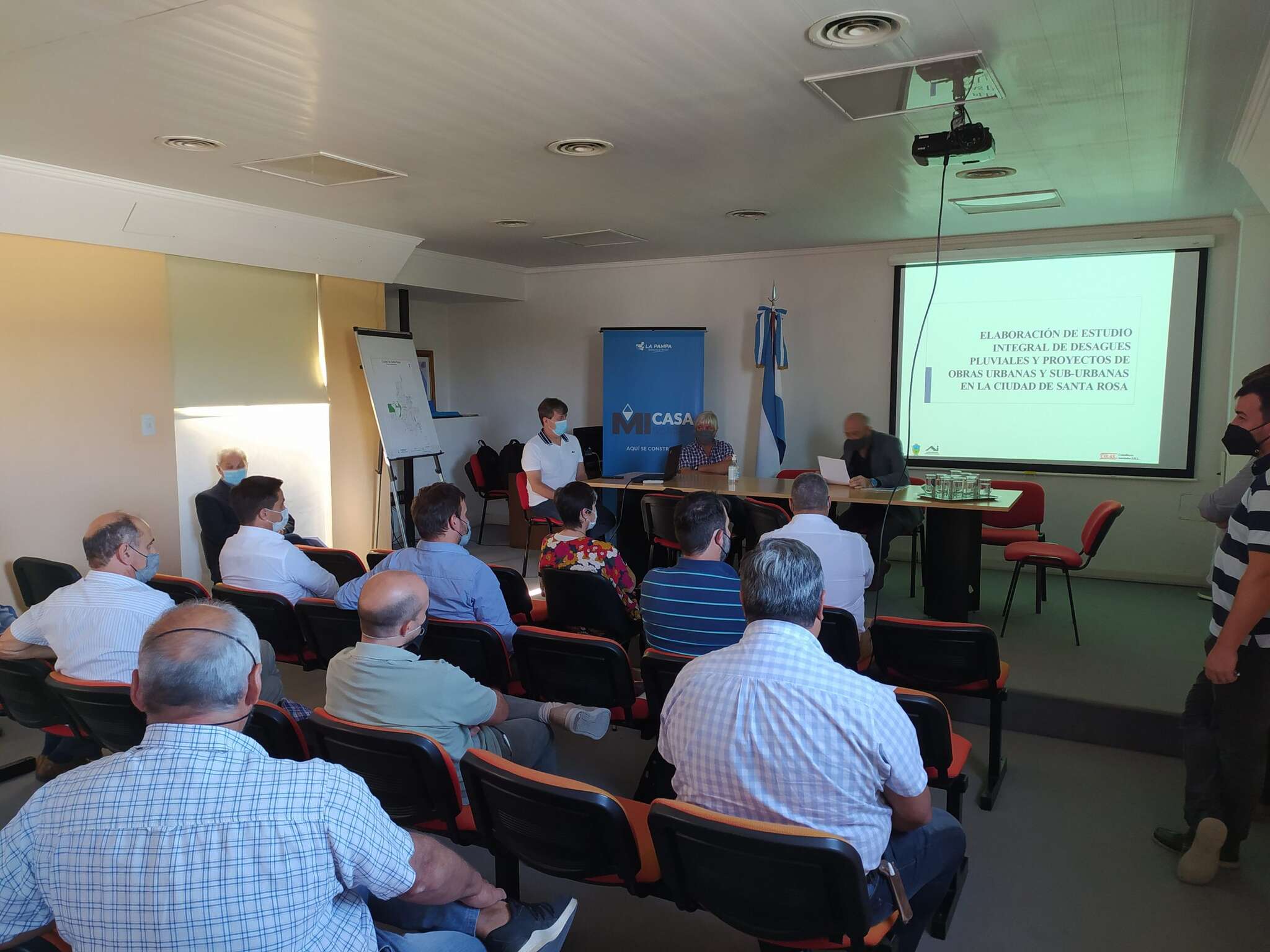 En ese marco, en el auditorio del Instituto Provincial de la Vivienda se realizó un encuentro entre distintas áreas del Gobierno provincial, de la Municipalidad de Santa Rosa y la consultora COAS en el que se trató la elaboración por parte de esta última de un estudio integral de desagües pluviales y proyectos de obra urbana y suburbana en el sudeste de la ciudad de Santa Rosa.