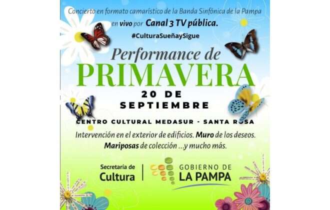 La Banda Sinfónica de La Pampa será la encargada de abrir el telón primaveral con una presentación en formato camarístico que brindarán este domingo 20 de septiembre a las 19, desde la terraza del Centro Cultural Medasur. También se emitirá por la pantalla de Canal 3, la Televisión Pública Pampeana.