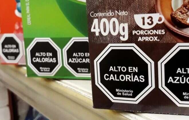 La ley aprobada prevé la incorporación en el frente de los envases de los productos ultraprocesados una etiqueta con forma de octógono negro con letras blancas que advierta el exceso de nutrientes críticos para la salud, como azúcares, sodio, grasas saturadas, grasas totales y calorías.
