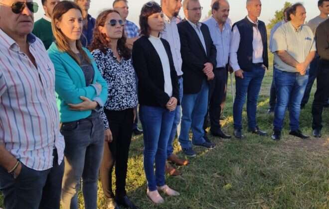 El secretario de Energía y Minería del gobierno de La Pampa, Matías Toso junto al subsecretario de Ambiente, Fabián Tittarelli, el subsecretario de Energías Renovables, Claudio Gordillo, la presidenta de Pampetrol SAPEM, María de los Ãngeles Roveda y los directores Vanina Basso y Pablo Datri, participaron de la inauguración de un nuevo Punto Solar en la localidad de Perú, en el marco del 64º aniversario de la Cooperativa de Servicios Públicos de General Acha (COSEGA).