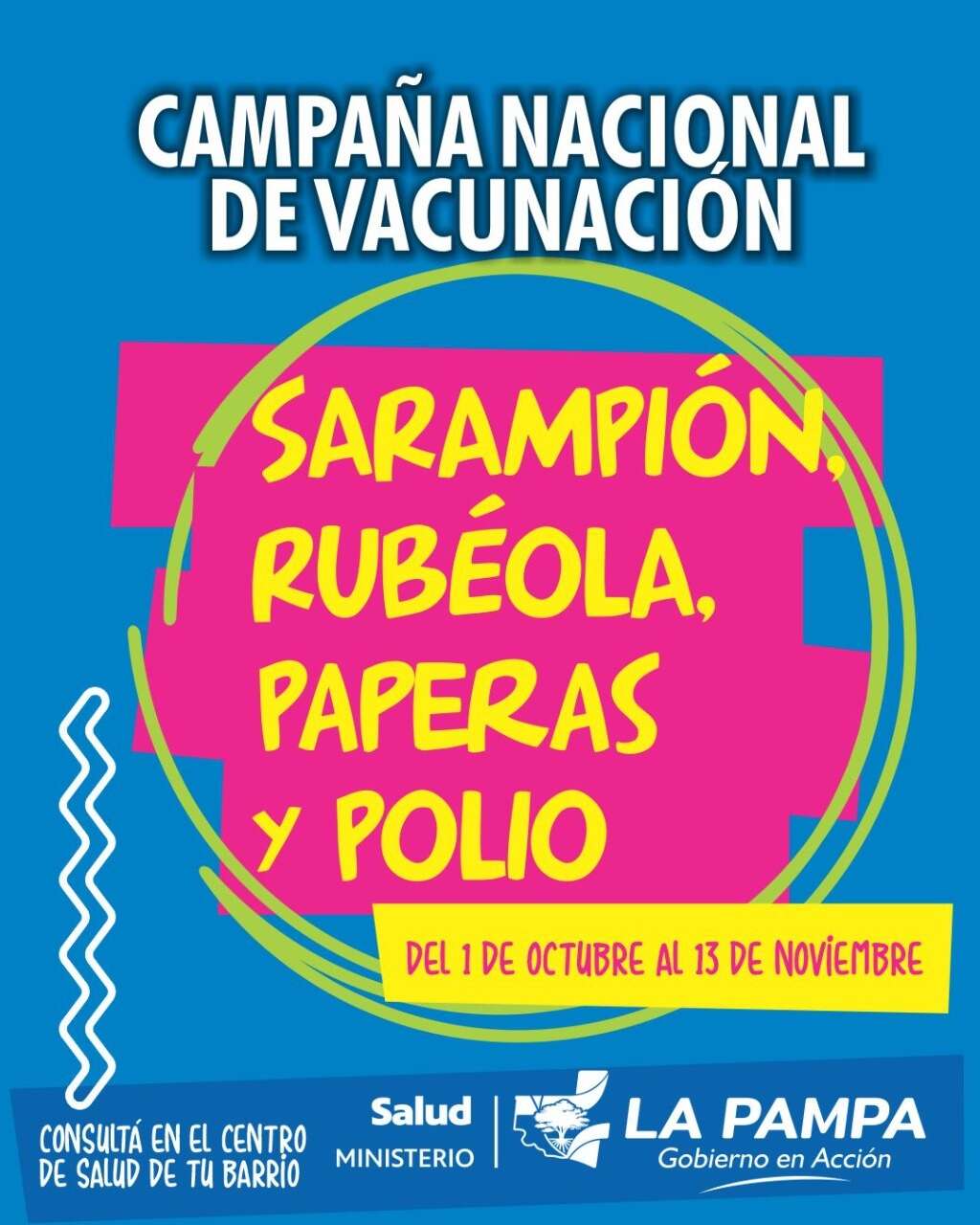 A partir de la 10:00 y hasta las 15:00, en el marco del inicio de la Campaña Nacional de Vacunación contra el sarampión, rubeola, paperas y poliomielitis se desarrollará dicha jornada de juegos, música y entretenimientos con el objetivo de festejar el lanzamiento y brindar información a quien la requiera.