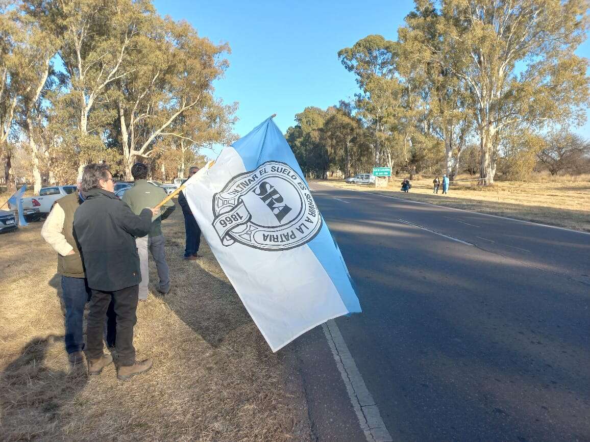 En La Pampa, dirigentes rurales y productores se manifestaron a la vera de la Ruta Nacional 5, a metros del Frigorífico Carnes Pampeanas. Sobre el mediodía cantaron el Himno Nacional Argentino y se leyeron documentos con críticas a las políticas nacionales.