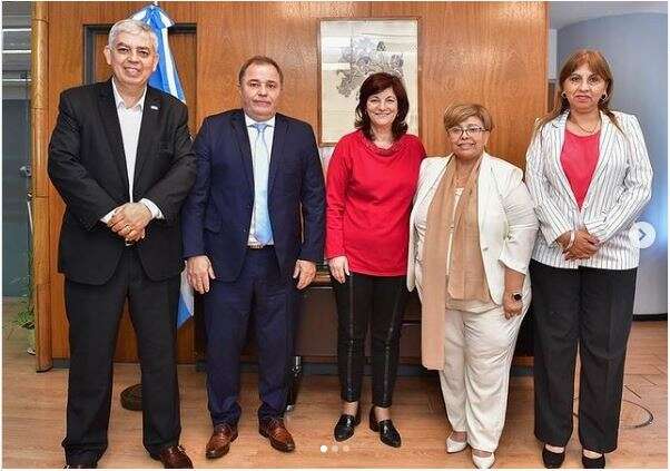 La funcionaria nacional replicó la reunión en las redes sociales describiendo el “primer encuentro” con las autoridades del Consejo Federal del Trabajo (CFT) “con el fin de profundizar sobre las políticas y objetivos necesarios para fortalecer a la administración del trabajo y procurar la mayor eficacia de la actividad gubernamental y de los actores sociales en las diversas jurisdicciones y competencias”. La ministra recibió a los integrantes del Consejo Federal del Trabajo acompañada por su equipo de gestión, Leonardo Di Pietro, Marcelo Bellotti, Diego Schleser; mientras que la visita estuvo integrada además de Pedehontaá, por representantes de Tucumán, La Rioja y Santiago del Estero, entre otros.