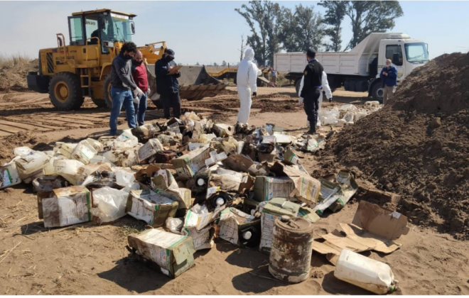 El pasado 27 de agosto pasado la subsecretaría de Ambiente actuó de oficio ante una denuncia anónima y logró hallar más de 400 bidones de agrotóxicos enterrados entre Ojeda y Ceballos.