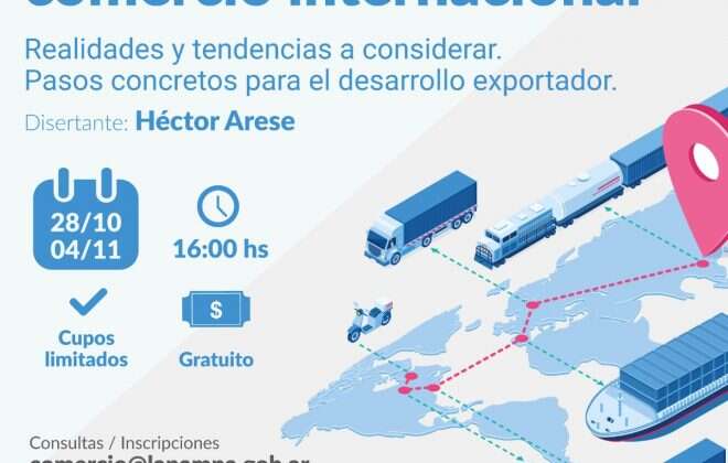 Con el fin de conocer y comprender el escenario mundial actual y detectar nuevas oportunidades de acción, el Ministerio de la Producción a través de la Dirección de Comercio y Competitividad y del Comité de Vigilancia de la Zona Franca de General Pico, invitaron a participar de las jornadas que tendrán lugar, con modalidad virtual, los días 28 de octubre y 4 de noviembre a las 16.